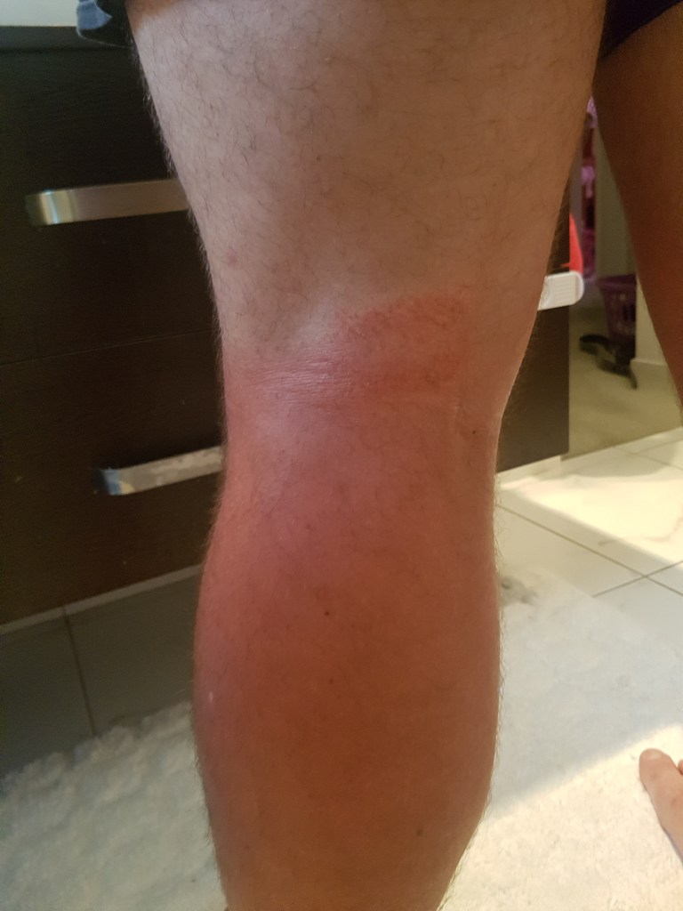 Behind knee chafing plus sun burn